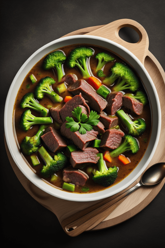 45. Beef and Broccoli Soup: Beef chuck, broccoli, onion, garlic, beef broth, cream.