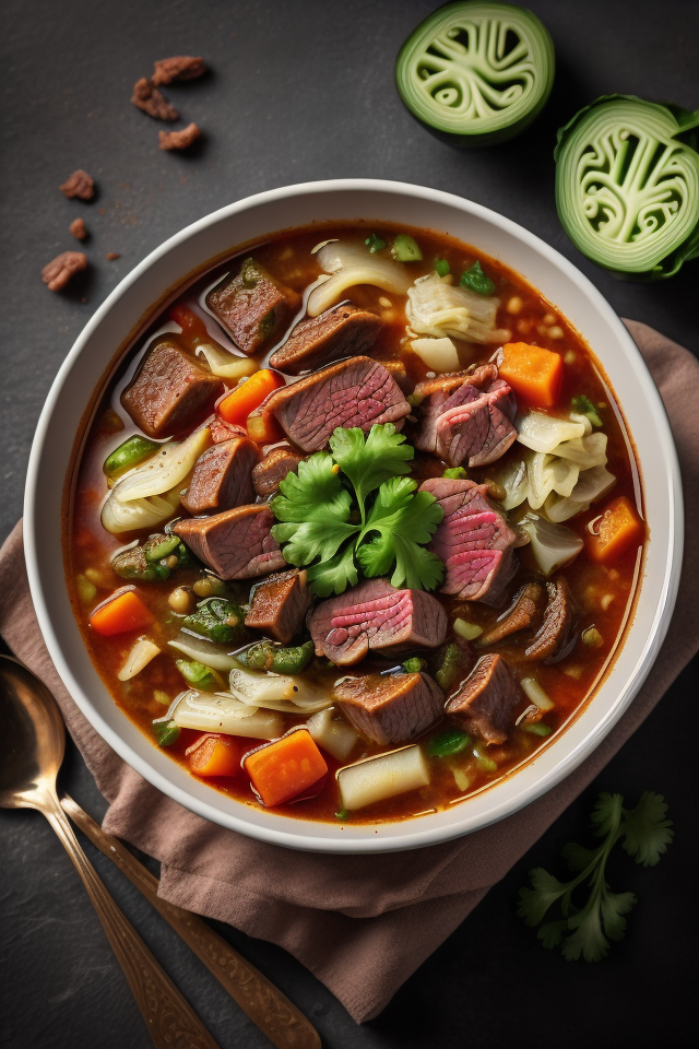 90. Beef and Cabbage Stir Fry: Beef sirloin, cabbage, soy sauce, garlic, cornstarch.