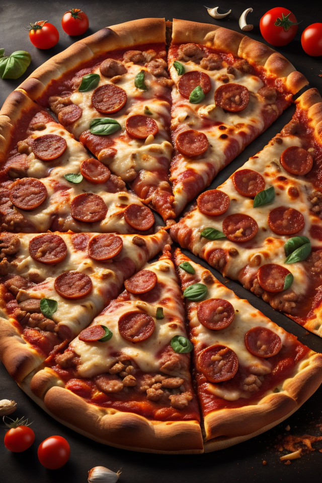 50. Meaty Pizza: Ground beef, pizza crust, tomato sauce, cheese, onion, garlic, pepperoni.