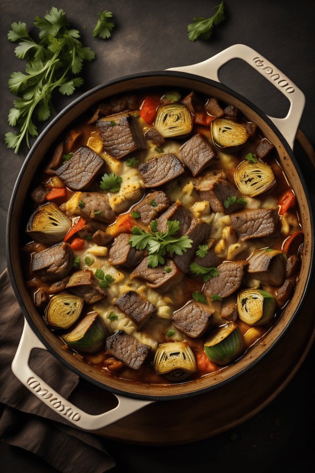 44. Beef and Artichoke Casserole: Beef sirloin, rice, artichoke hearts, onion, garlic, beef broth.