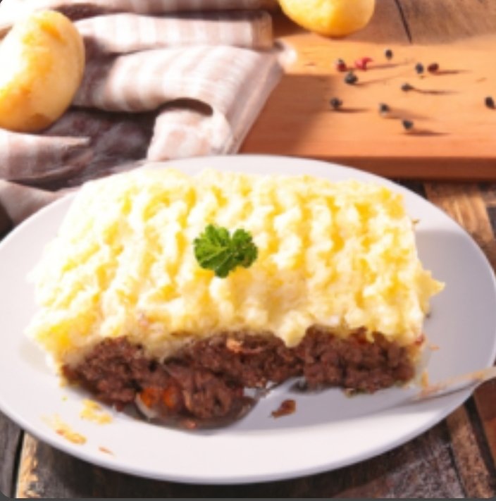 4. Shepherd’s Pie: Ground beef, mashed potatoes, carrots, peas, onions, garlic, Worcestershire sauce, beef broth.