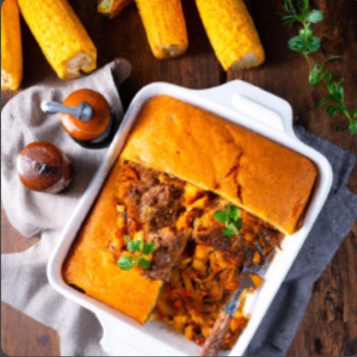 19. Beef and Cornbread Casserole: Ground beef, cornbread mix, onion, garlic, corn, tomato sauce.