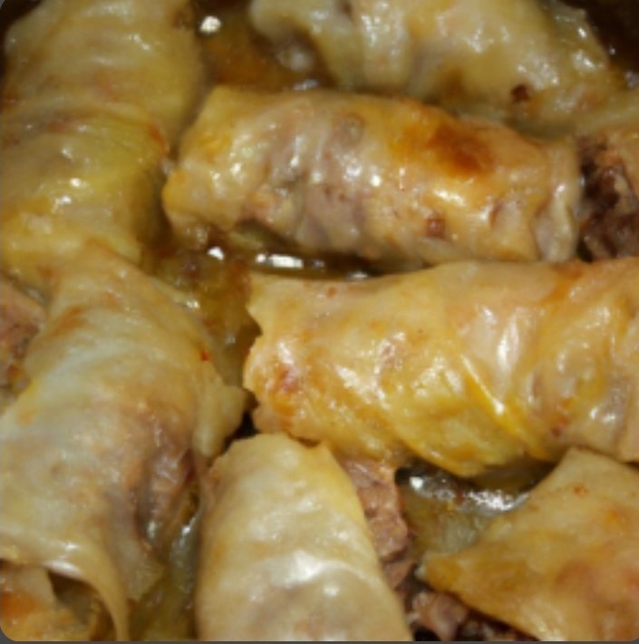 18. Beef and Cabbage Rolls: Ground beef, cabbage leaves, rice, onion, garlic, tomato sauce.