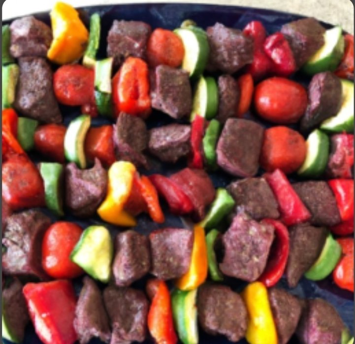 25. Beef and Summer Vegetable Kabobs: Beef sirloin, zucchini, yellow squash, onion, garlic, soy sauce.