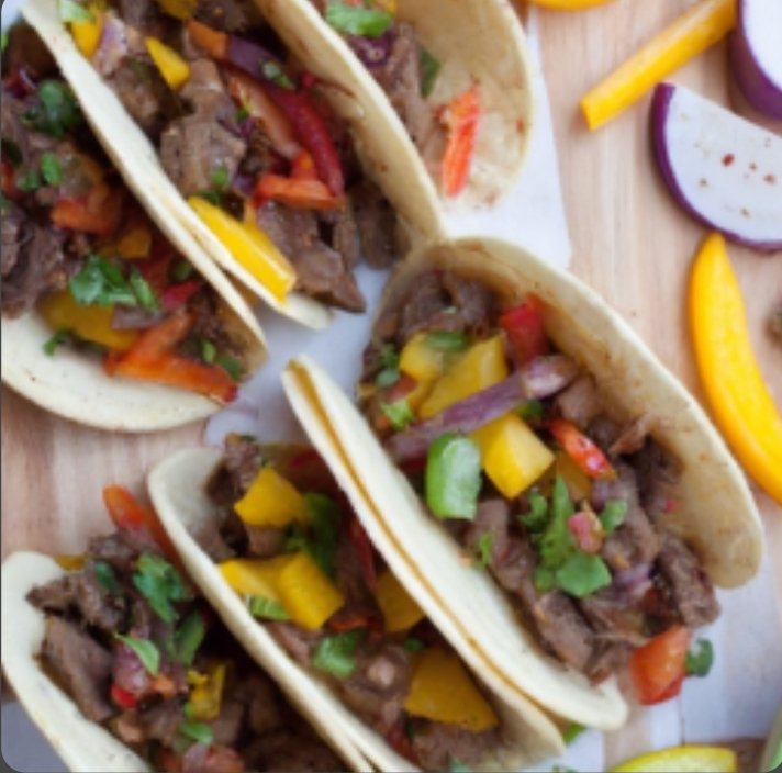 70. Beef and Mushroom Tacos: Ground beef, mushrooms, tortillas, cheese, onion, garlic.