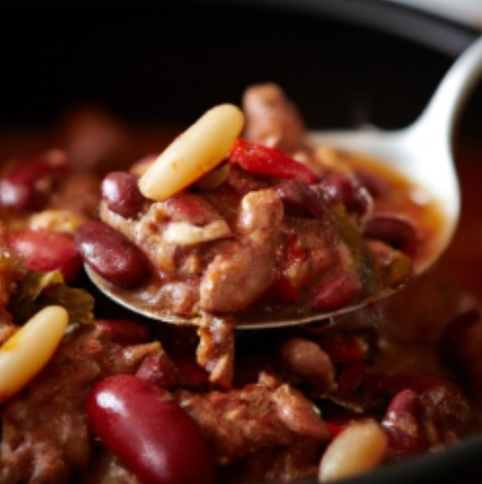 9. Chili: Ground beef, kidney beans, tomato sauce, onions, garlic, chili powder, cumin, paprika, cayenne pepper.