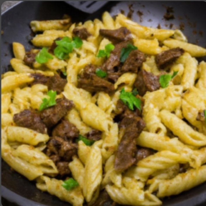 16. Beef and Mushroom Stroganoff: Beef sirloin, mushrooms, onion, garlic, sour cream, beef broth, Worcestershire sauce.