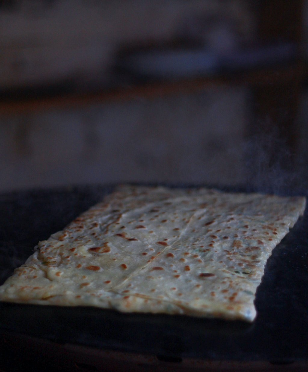 11. Taiwanese Green Onion Crepes: Mix flour, water, and salt, then let the batter rest. Spread beetroot-onion mixture then fried eggs and cooked in low heat till crispy.